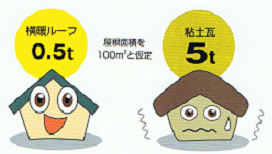 | 軽い屋根はリフォームでも効果を発揮。瓦屋根から葺き替えた場合、耐震性約30%アップ! (2階建て、延べ床面積165m²、屋根面積100m²の場合) |